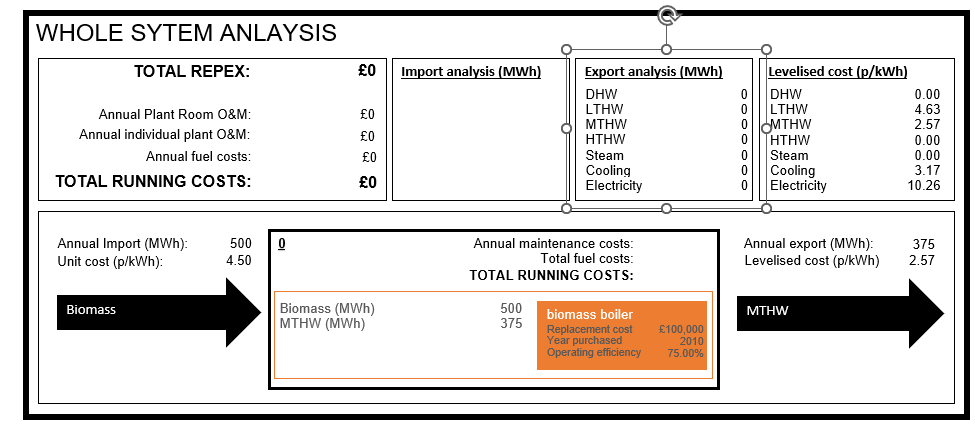 The full financial cost of energy used to heat, cool or power a building includes not only the cost of the fuel, but also the cost of operating, maintaining and replacing the plant that converts the fuel into usable energy. It is particularly difficult to calculate the costs of different types of energy, such as steam, space heating or electricity, generated from different types of on-site plant located across multiple plant rooms.