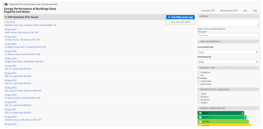 To check for compliance with all regulatory and legal requirements the definitive source of EPCs, DECs and ACIRs is the register and not the data published on this website.