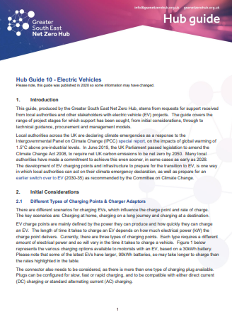 This guide, produced by the Greater South East Net Zero Hub, stems from requests for support received from local authorities and other stakeholders with electric vehicle (EV) projects. The guide covers the range of project stages for which support has been sought, from initial considerations, through to technical guidance, procurement and management models.